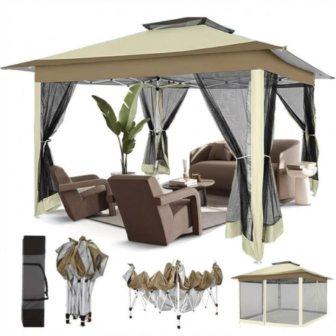 Prémium Összecsukható Kerti Pavilon és Partisátor Szúnyoghálóval (3x3m) - Khaki XH1000824-2 kerti bútor termékleírás