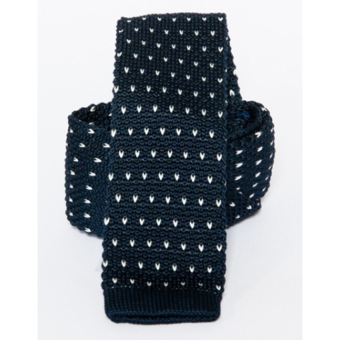 1 kép Prémium slim kötött nyakkendő - Sötétkék-fehér mintás