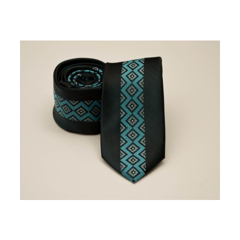 1 kép Prémium slim nyakkendő - Fekete-tűrkíz mintás