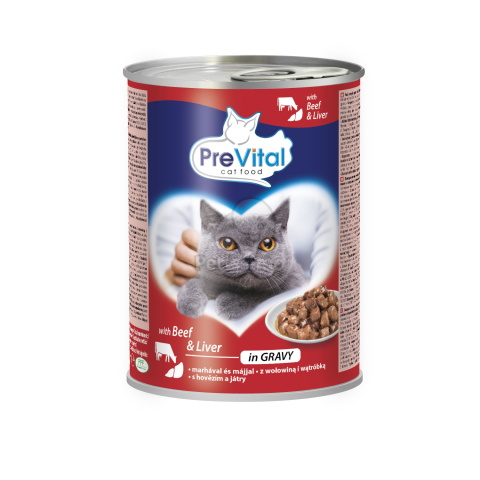 PreVital nedves állateledel felnőtt macskák részére - marha, máj szószban 415 g macskaeledel termékleírás