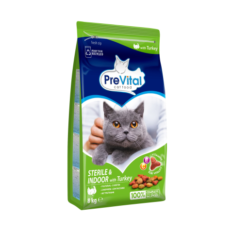 Teljes PreVital Sterile & Indoor száraz macskatáp - pulyka 8 kg termékleírás