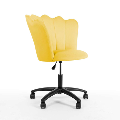 Princessa Kagyló Forma Forgószék - Vidám Sárga Szín Ez a gyönyörű, sárga bársony Princessa forgószék stílusos és kényelmes megoldás a nappaliba, irodába vagy akár a hálószobába is. A kagyló formájú háttámla egyedi megjelenést kölcsönöz, míg a forgó m...