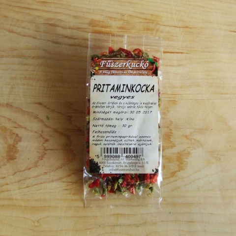 Pritaminkocka - A pritamin paprika édes íze, és erőteljes friss színe összezárva egy zacskóban - ez a szárított pritaminpaprika kocka. Használja kedvenc ételeibe, és a nagyszerű íz mellé fantasztikus látványt is tálalhat. A pritaminkocka földimogyorót,