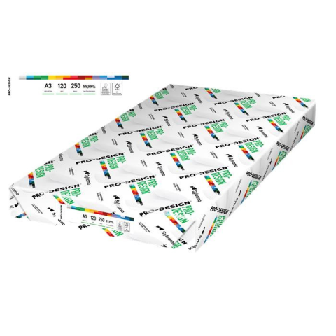 Másolópapír, digitális, A3, 120 g, PRO-DESIGN - speciális, színes nyomtatásra és másolásra kifejlesztett papír - brilliáns színeket és éles kontúrokat érhet el minden színes nyomtatásnál - CIE 168 fehérség - megkapta az FSC (Felelős Erdőgazdálkodás