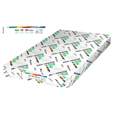 Másolópapír, digitális, SRA3, 450x320 mm, 120 g, PRO-DESIGN - speciális, színes nyomtatásra és másolásra kifejlesztett papír - brilliáns színeket és éles kontúrokat érhet el minden színes nyomtatásnál - CIE 168 fehérség - megkapta az FSC (Felelős Er