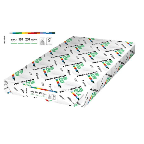 Másolópapír, digitális, SRA3, 450x320 mm, 160 g, PRO-DESIGN - speciális, színes nyomtatásra és másolásra kifejlesztett papír - brilliáns színeket és éles kontúrokat érhet el minden színes nyomtatásnál - CIE 168 fehérség - megkapta az FSC (Felelős Er