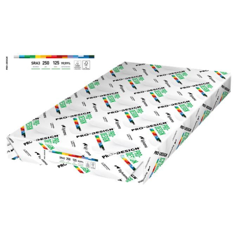 Másolópapír, digitális, SRA3, 450x320 mm, 250 g, PRO-DESIGN - speciális, színes nyomtatásra és másolásra kifejlesztett papír - brilliáns színeket és éles kontúrokat érhet el minden színes nyomtatásnál - CIE 168 fehérség - megkapta az FSC (Felelős Er