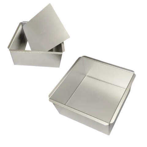 Négyszög alakú, kivehető aljú, alumínium sütőforma, amelynek teljes mérete 22 cm x22 cm x 7.5 cm