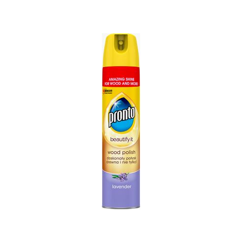 A Pronto Expert Care levendula bútorápoló aeroszol kiemeli a kezelt fabútorok szépségét azáltal, hogy könnyedén eltávolítja a port és az ujjlenyomatokat, valamint fényes védőbevonatot biztosít anélkül, hogy bármilyen zsíros, viaszos nyomot hagyna maga után.