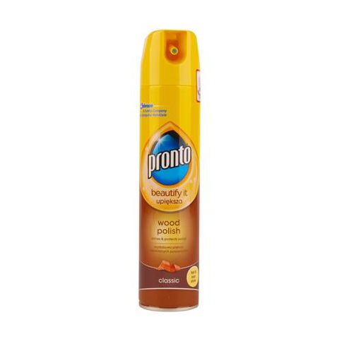 Felülettisztító, spray, 0,25 l, PRONTO Classic Wood -bútorápoló aeroszol egyedülálló formulával: mindennapi favédelem -fokozza a fa bútorok természetes fényét -eltávolítja az ujjlenyomatokat, zsírfoltokat és ragacsos szennyeződéseket -kevesebb por,