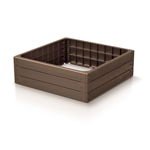 Magaságyas barna színben, műanyagból készült, famintázatú, egymásra rakható ágyások, nincs alja, kevesebb gyom, kényelmesebb a növényápolás, dekoratív elemként is használható a kertben. Egyszerűsítsd a növénytermesztést, és szerezd be a magaságyás BAS