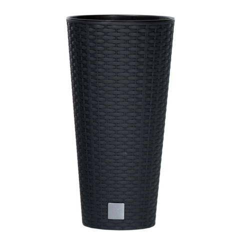 Virágcserép műanyag betéttel, 8 l térfogatú, érdekes textúrájú, kül- és beltéri használatra alkalmas, UV-álló. Méretek 20 x 38,1 x 20 cm, antracit színben. Ültesse át bel- vagy kültéri növényeit astílusos virágcserépbe, a Prosperplast márkától származó