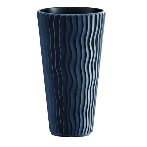 Magas virágcserép, térfogata 37 l, hullámos textúrájú kialakítás, kül- és beltérre egyaránt alkalmas, praktikus betétet tartalmaz a növények ültetéséhez, méretei 34,9 x 62 x 34,97 cm, antracit színű. Tedd beltéri vagy kültéri növényeidet a Prosperplast