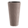 Magas virágcserép, térfogata 22 l, hullámos textúrájú kialakítás, kül- és beltérre egyaránt alkalmas, praktikus betétet tartalmaz a növények ültetéséhez, méretei 29,7 x 53,1 x 29,7 cm, mokka színű. Tedd beltéri vagy kültéri növényeidet a Prosperplast S