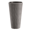 Magas virágcserép, térfogata 45 l, hullámos textúrájú kialakítás, kül- és beltérre egyaránt alkalmas, praktikus betétet tartalmaz a növények ültetéséhez, méretei 39 x 70,8 x 39 cm, szürke színű. Tedd beltéri vagy kültéri növényeidet a Prosperplast SAND