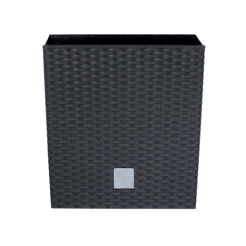 A Rato Low sorozat négyszögletes, alacsony virágcserepe rattan fonatos mintával rendelkezik, és klasszikus és letisztult megjelenésének köszönhetően exkluzív lakberendezési elemnek számít. A virágcserép textúrája hűen utánozza a természetes rattan fonatokat. Az elegáns mintájú virágcserép beltéren és kültéren is használható. Kiválóan alkalmas kerti teraszokra, kávézókba vagy éttermekbe is. A csomag részét képezi egy fekete belső cserép is, amelybe a vi