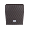 A Rato Low sorozat négyszögletes, alacsony virágcserepe rattan fonatos mintával rendelkezik, és klasszikus és letisztult megjelenésének köszönhetően exkluzív lakberendezési elemnek számít. A virágcserép textúrája hűen utánozza a természetes rattan fonatokat. Az elegáns mintájú virágcserép beltéren és kültéren is használható. Kiválóan alkalmas kerti teraszokra, kávézókba vagy éttermekbe is. A csomag részét képezi egy fekete belső cserép is, amelybe a vi