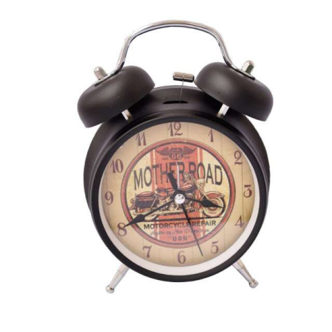 Pufo Motorkerékpár ébresztő asztali óra, fém, 15 cm, fekete