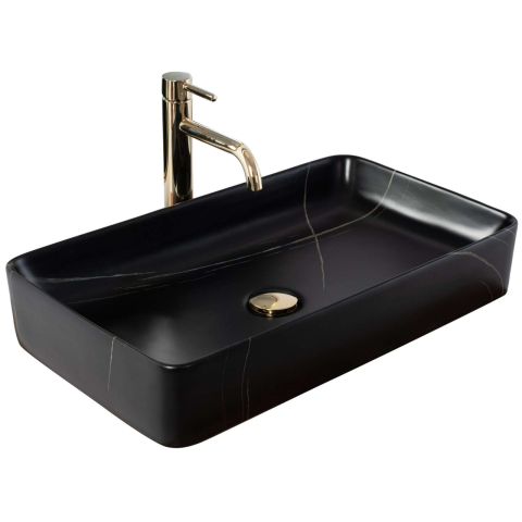 Pultos Mosdó - Elegáns Matt Fekete Design 🖤 Ez a modern, egyedi Denis mosdókagyló stílust és eleganciát visz a fürdőszobájába. A matt fekete felület időtlen eleganciát sugároz, miközben a természetes kő hatását keltő egyedi mintázat különlegessé te...