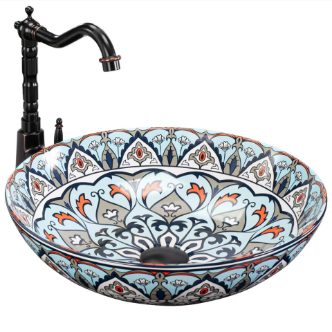 Kerek, festett mosdó kagyló - Mexikói stílus 🇲🇽 Ez a gyönyörű, kerek mosdó kagyló egyedi mexikói mintájával feldobja fürdőszobáját. Prémium minőségű egészségügyi kerámiából készült, strapabíró és könnyen tisztítható. A kézzel festett mintázat exkluz...