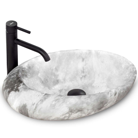 Modern, ovális kőmosdó elegáns, szürke márványhatású felülettel Ez a stílusos, ovális alakú mosdó tökéletes választás modern fürdőszobákba. A magas minőségű kerámia anyagnak köszönhetően strapabíró és könnyen tisztítható. A szürke márványhatású felü...