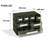 PUMA 205 fiókos tároló rendszer, 7 db fiókkal. Átlátszó, címketartós fiókokkal. A papír címkék a termék részei. Professzionális kivitelezésű, méretpontos, formatartó. Önállóan is használható, de oldalukon, aljukon, tetejükön kialakított hornyokkal egymás