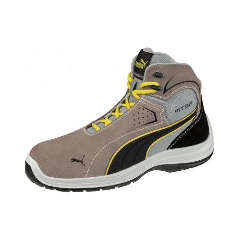 PUMA Safety MOTO PROTECT munkavédelmi bakancsHidrofóbizált velúr bőr felsőrész. Üvegszálas orrmerevítő és hajlékony kerámiaszálas (FAP®) talpközép. BreathActive funkcionális bélés. Evercushion® plus talpbetét. MOTO PROTECT csúszásmentes DUO-PU-talp,