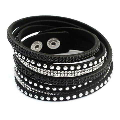 PUNKY valódi bőr divat karkötő és nyaklánc egyben - fekete