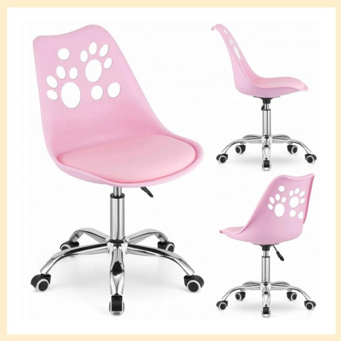 PUPPY LOVE irodai szék rózsaszín ZTKO16RJellemzők: - Anyag: PP anyag (tartós és könnyen tisztítható)Eco-bőr (puha, kényelmes, könnyen tisztítható)Krómozott keret (strapabíró és elegáns)- Masszív, ergonomikus és kényelmes ülés- Barátságos pasztell színek- Gyerekszobába tökéletes- Sima magasságállítás- Teljesen 360°-os elforgatás- Tömör acél talp- SÚLY 60 kg-igBEÁLLÍTÁS - a szék ülésmagassága állítható. Ennek köszönhetően a magasságát egyén
