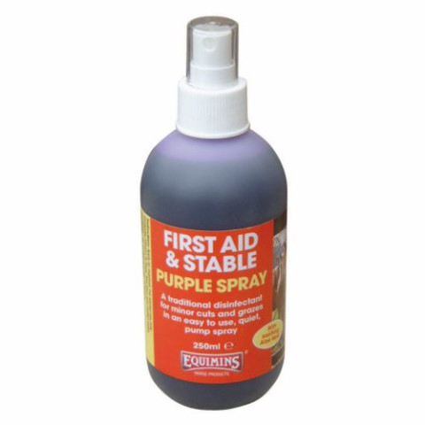 Purple Spray – Lila Spray – Gyors és hatékony sebfertőtlenítő lovaknak. A metil-ibolya és az aloe vera kombinációja gyorsítja a sebgyógyulást és nyugtatja a bőrt. Ideális kisebb sérülések, horzsolások és vágások esetén. Purple Spray – Megbízható segíts