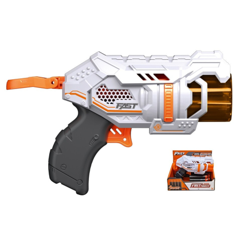 Pisztoly 4 habszivacs golyóval. Töltés a kakas felhúzásával és 3 golyó helyezhető a csőbe.