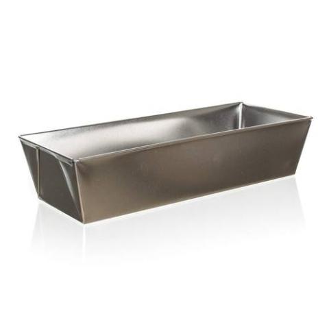 30 x 12 x 7 cm méretű püspökkenyér sütőforma. Édes és sós ételek sütéséhez egyaránt kiváló. A forma elektromos-, gáz- és forrólevegős sütőben egyaránt használható. Az ónozott fémlemez rendkívül ellenálló anyag. Fém eszközök is használhatók.