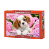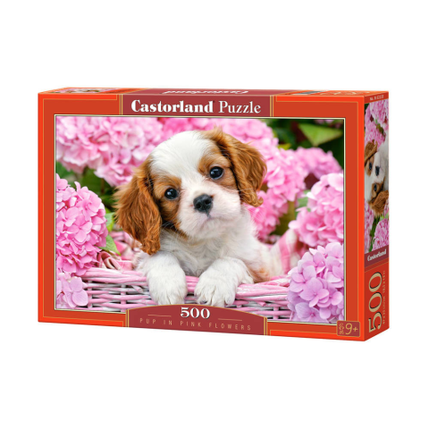 1 kép Puzzle 500 db. Kölyökkutya rózsaszín virágokban