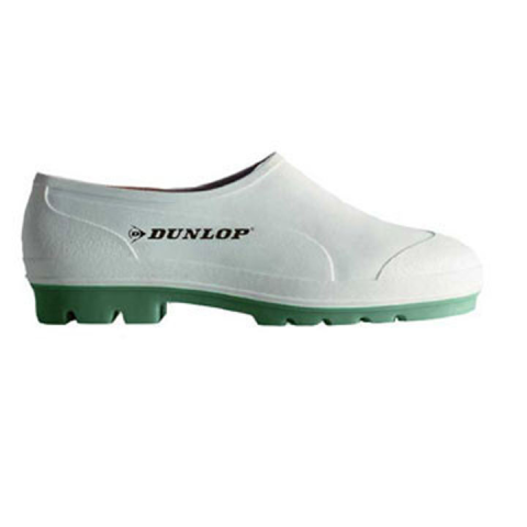 PVC félcipő - vizes környezetben ajánlott gyártó: DUNLOP Csúszásmentes nitril talp. Fém vagy kompozit orrmerevítő nélküli modell. Ellenáll a víznek, savaknak, lúgoknak, fertőtlenítőszereknek. A DUNLOP Zoknira húzható PVC félcipő 01 orrmerevítő nélkü