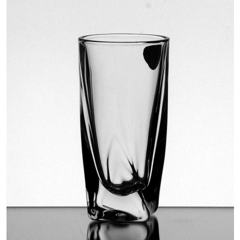 Csavart, szögletes formájú kristály pálinkás pohár.