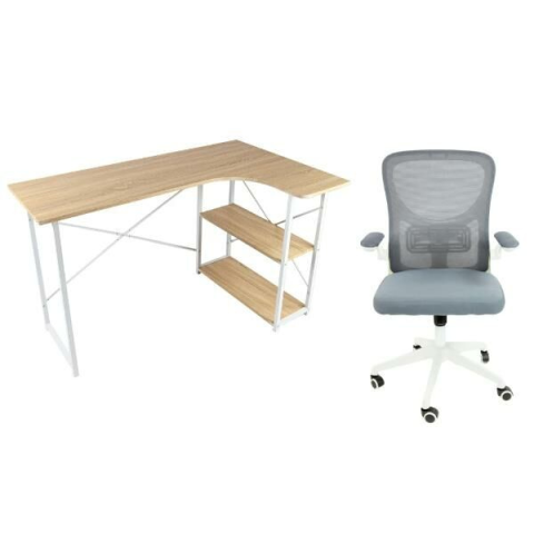 Íróasztal és ergonomikus szék szett: Stílusos és funkcionális otthoni iroda 💻🪑 Ez a készlet egy elegáns íróasztalt és egy kényelmes forgószéket tartalmaz, ideális otthoni irodába vagy tanulószobába. A világos fa dekorációjú asztal és a modern szürk...