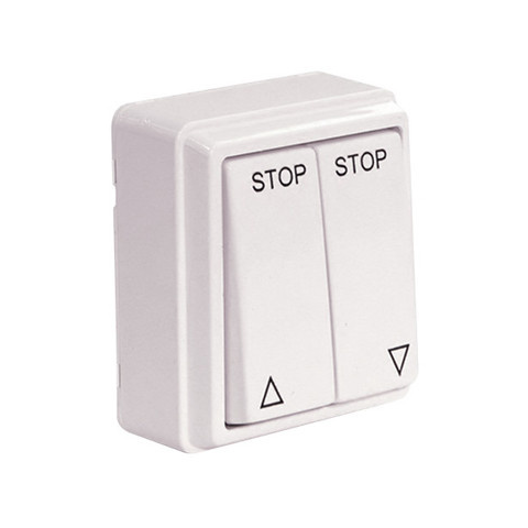 Redőnykapcsoló, impulzusos, falon kívüli, fehér. - Univerzális redőnykapcsoló redőnyvezérlésekhez. - Impulzusos, billenő kapcsoló. - Falon kívüli szerelhetőség. - Fehér színű. - Esztétikus kivitel. - Fel/le nyíllal ellátott billenő gombok.