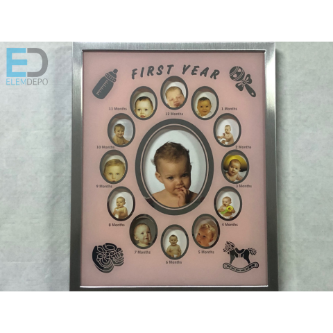1 kép " Az első 12 hónapom " képkeret 25 x 30cm ezüst- rózsaszín