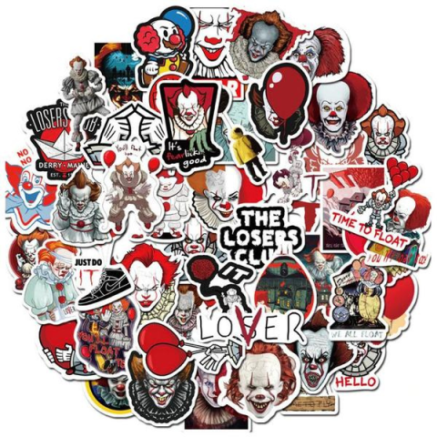 50 darabos Pennywise matrica csomag horrorrajongóknak. Tartós, vízálló matricák laptopra, biciklire, bőröndre vagy gördeszkára. Rendeld meg most