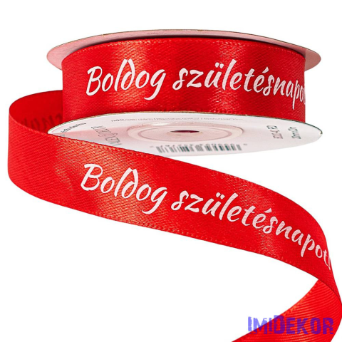 1 kép "Boldog Születésnapot!" feliratos szatén szalag 20mm x 20m - Piros