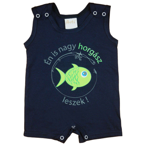 "Én is nagy horgász leszek" feliratos ujjatlan napozó rugdalózó 1 kép