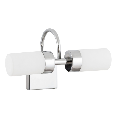 Modern megjelenésű fürdőszobai falikar beépített energiatakarékos LED izzókkal. 15 cm kinyúlású, 26 cm széles, króm színű fém lámpatest és opálüveg lámpabúrák, IP44-es védettséggel. A beépített LED izzók 2x 4W teljesítmény mellett 785 lumen fényerőt, valamint 4000 Kelvines, természetes fehér színű fényt kínálnak. A lámpatestben a izzók nem cserélhetők.