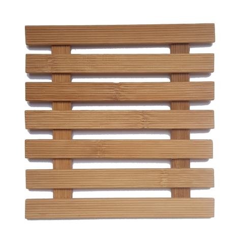 Bambuszból készült, négyzet alakú rácsos edényalátét, mely megóvja az asztalodat és a konyhapultodat a forró edények által okozott sérülésektől, de ezek mellett igazi dísze lehet a terített asztalnak is. Tulajdonságok: Anyaga: bambusz Az edényalátét mé