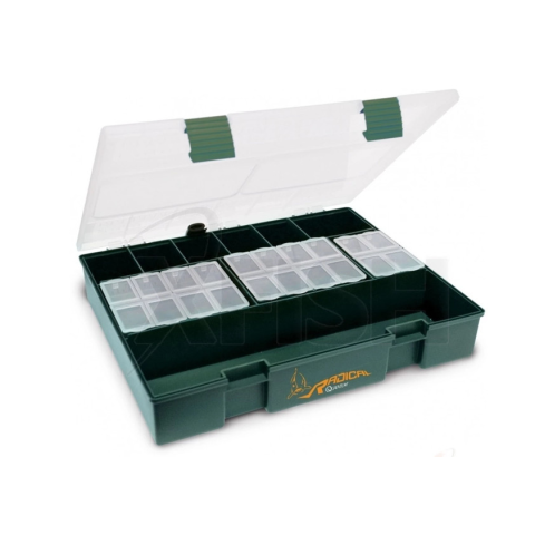 Minőségi aprócikkes dobozszett a Radical Carptól Jól megtervezett szerelékes doboz praktikus méretű rekeszekkel, kiegészítő, akár külön is használható 6db kisebb dobozzal. Passzentos záródás, könnyed, de mégis biztos nyitás. Feederes, bojlis horgászok