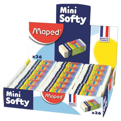 Radír display, MAPED Mini Softy - ceruzaradír papírtokkal - méret: 39x18x13 mm - ftalátmentes Gyártó/első EU forgalmazó elérhetősége: MAPED SAS 530 route de Pringy - 74370 Argonay sophie.souillard@maped.fr www.maped.com