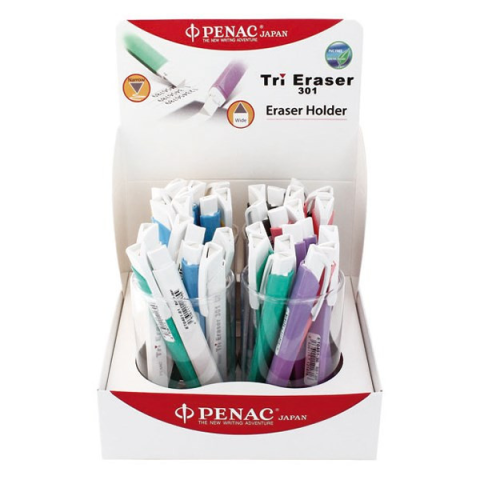 Radír stift PENAC TRI nyomógombos cserélhető betétes mechanikus radír Stiftes kialakítású ceruzaradír műanyag tollszárban elhelyezve. A nyomógomb segítségével adagolható a radír, mely utántölthető.