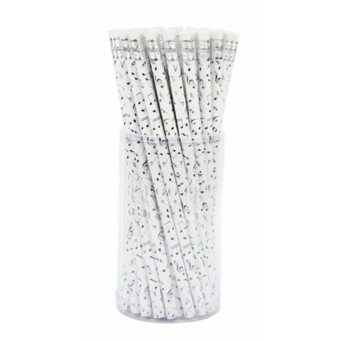 Radíros végű ceruza, fehér alapon, fekete zenei jelekkel