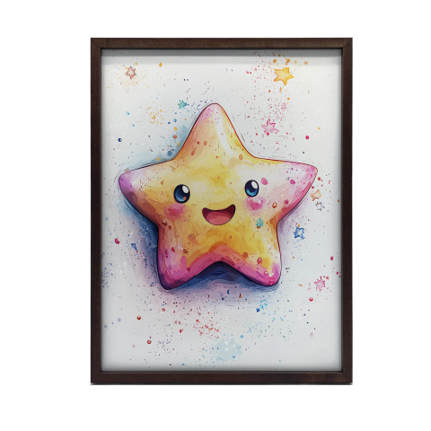 Vidám Csillag Falikép: 70x100 cm-es prémium vászonkép, keret nélkül ✨ Ez a gyönyörű, 70x100 cm-es Vidám Csillag falikép feldobja otthonod! Marcin Zbijowski neves lengyel művész alkotása prémium minőségű vászonra nyomtatva, hordágyra feszítve. A kere...