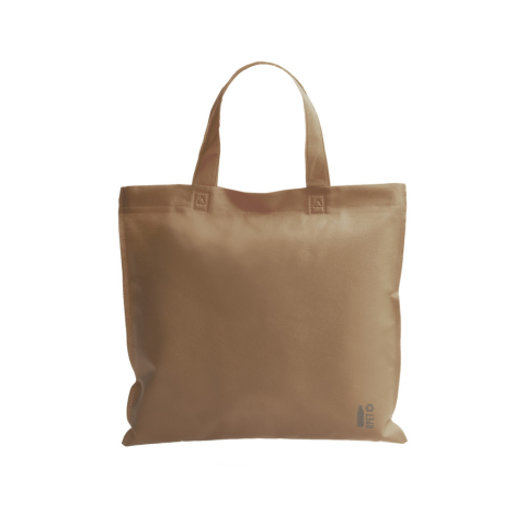 RPET non-woven bevásárlótáska közepes hordfüllel, 70 g/m². Megkülönböztető RPET címkével.