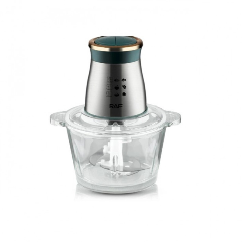 RAF Konyhai Többfunkciós Aprító 800 W Teljesítményű Speciális Mini Turmixgép Az aprítógép olyan konyhai eszköz, amelyet az ételek gyors és hatékony aprítására és darálására használnak. Jellemzően vágókésekkel felszerelt tartályból és egy fedélből áll. A